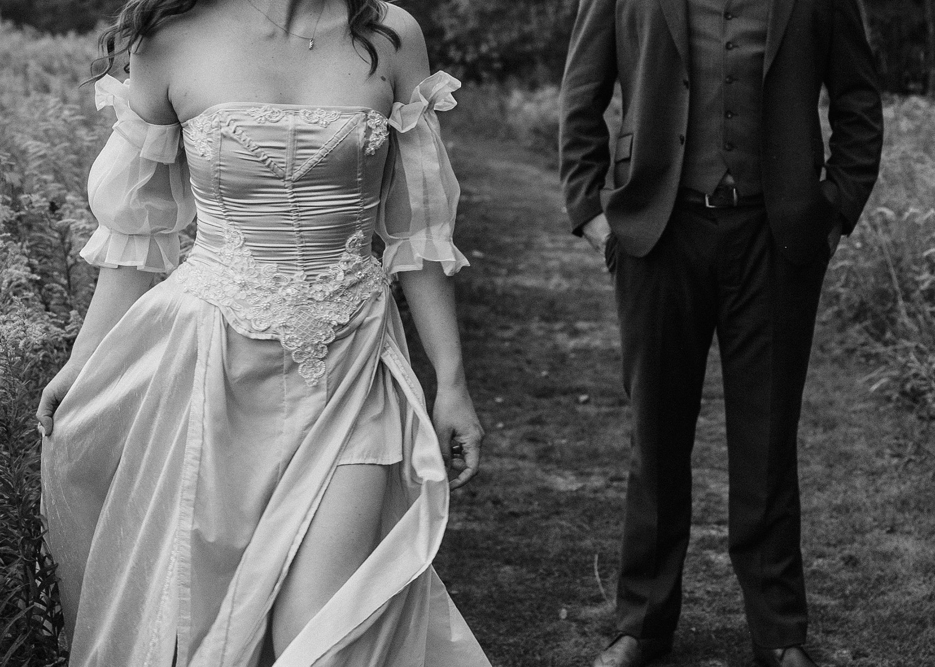 Wedding Dress designed for my sister Evelyn Immonen and her wedding to Rory Dahl. Designed out of silk and upcycled fabric elements of our mother's wedding dress.