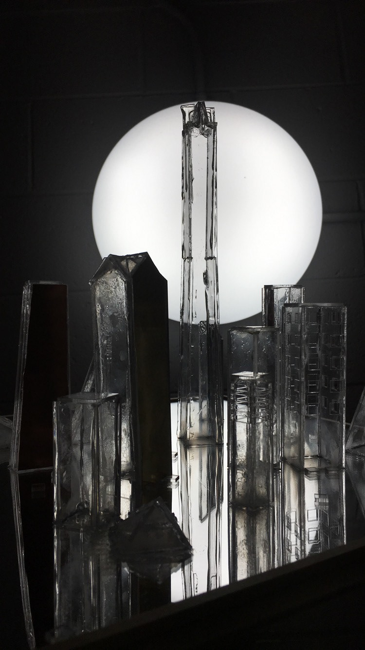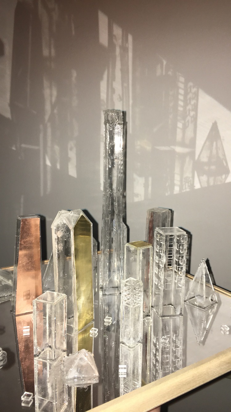 Acrylic, copper, brass, aluminum, mirror, and wood