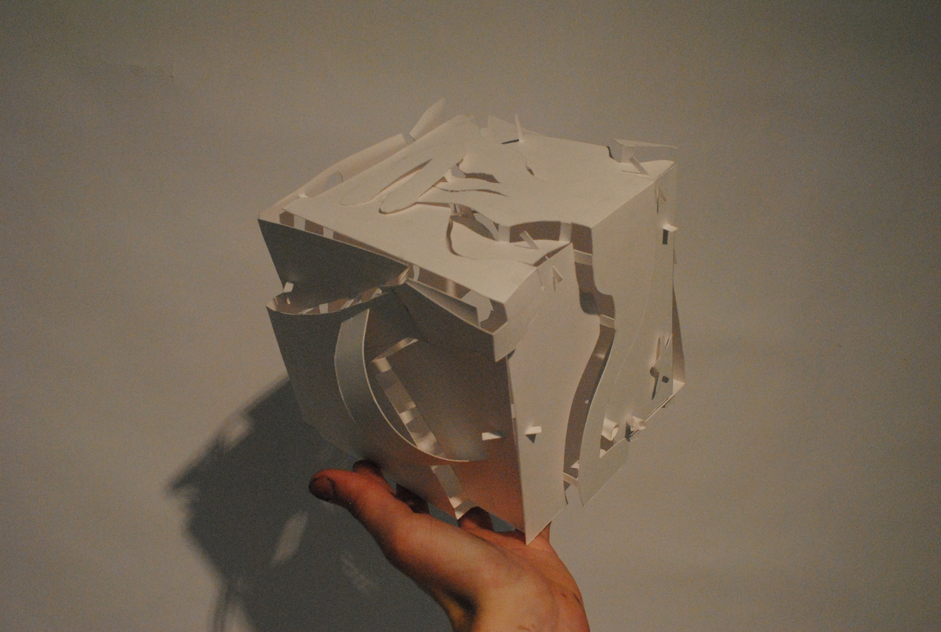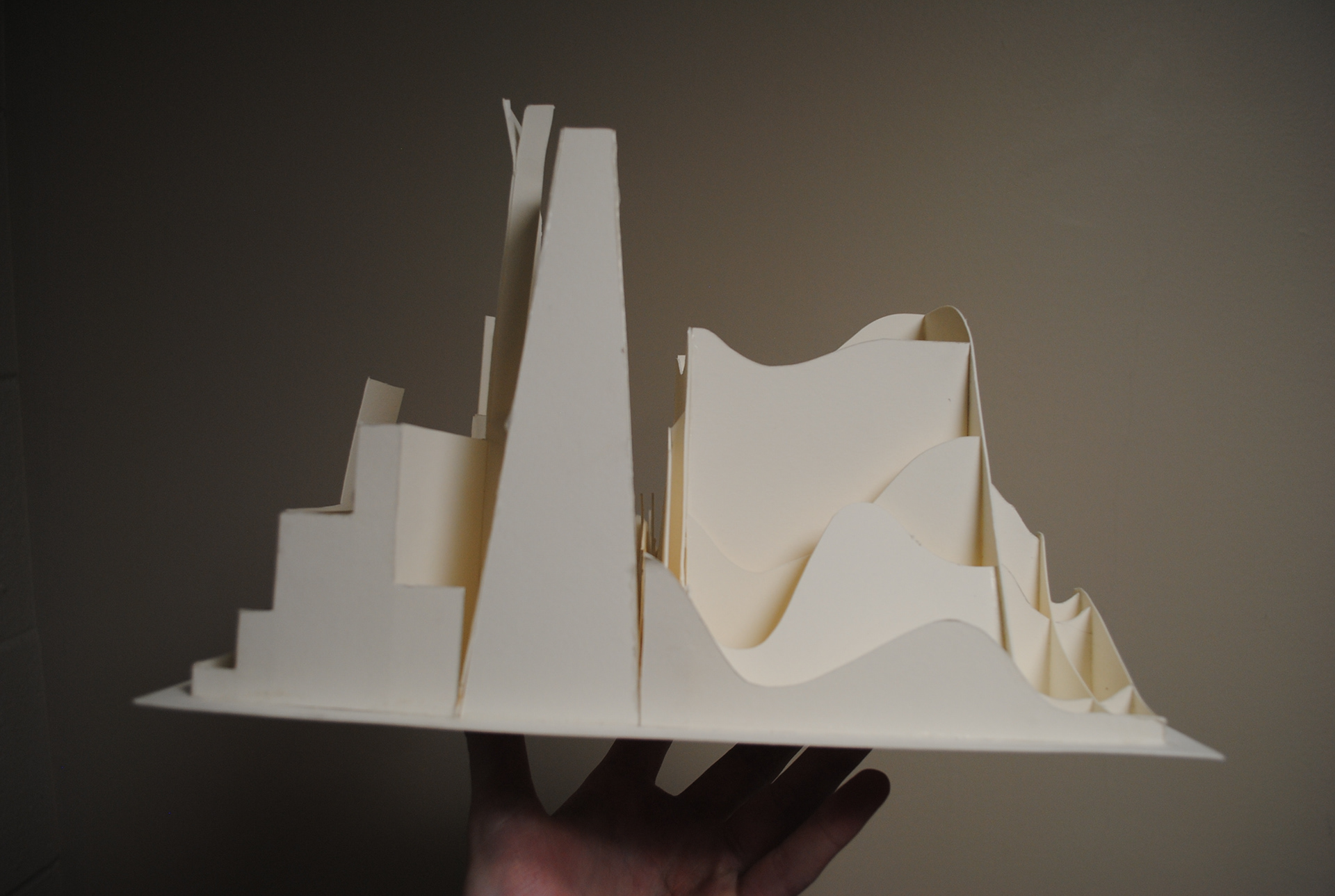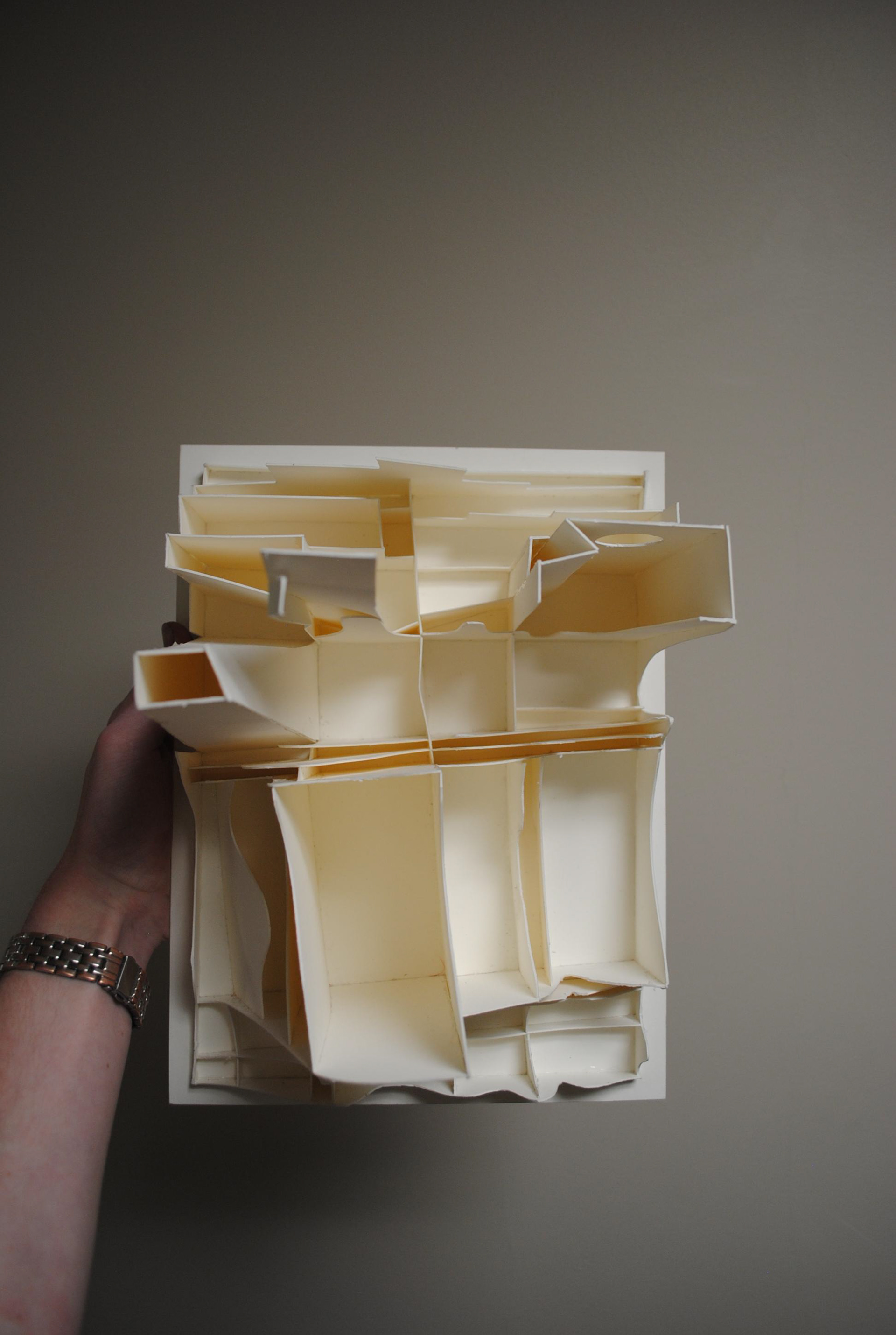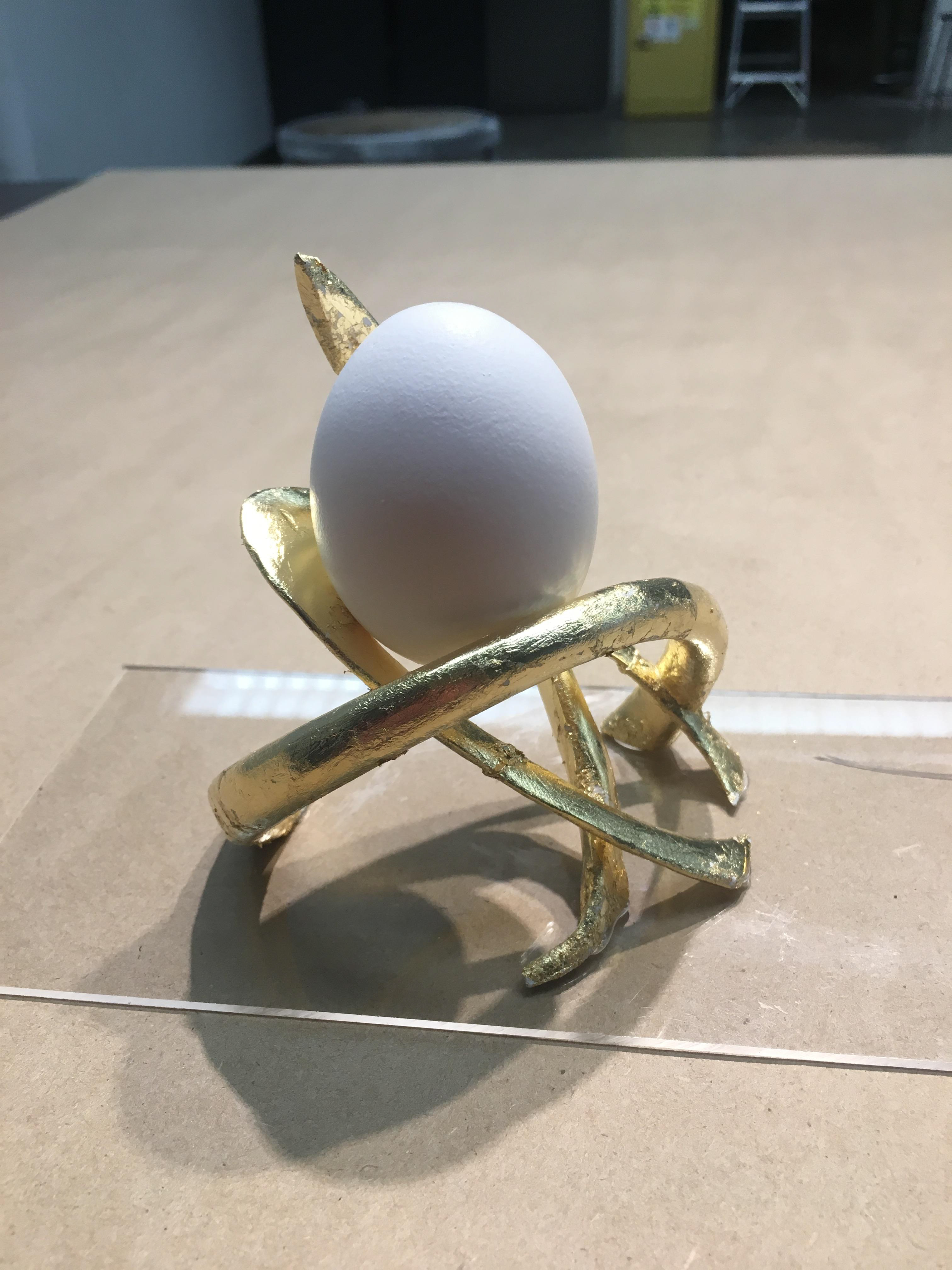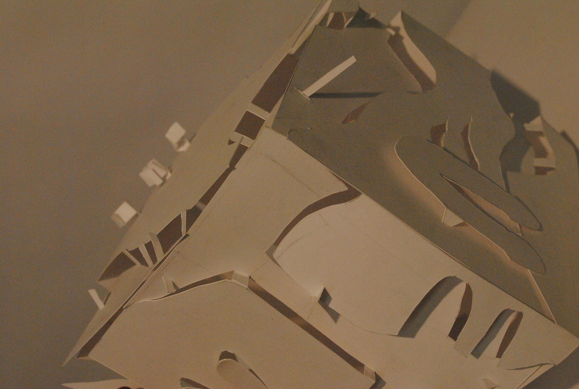 Wood, mylar, 3D print, copper, lightbulb & wires